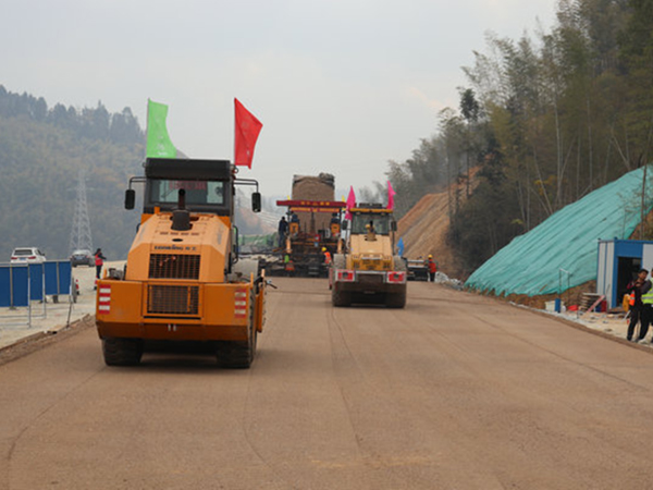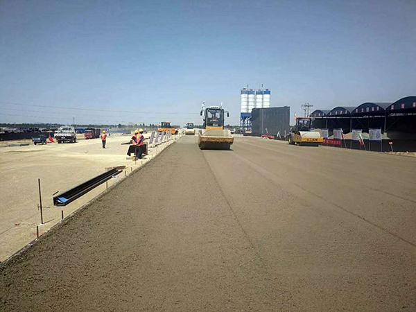 水穩(wěn)攤鋪施工現(xiàn)場(chǎng)